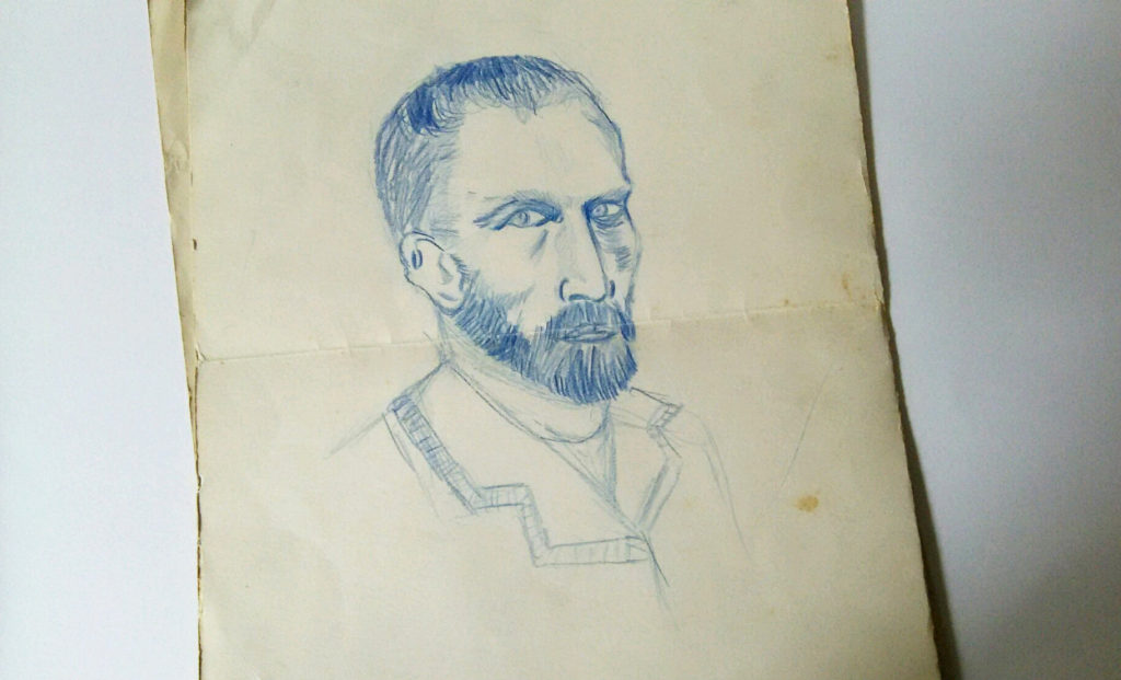 ゴッホの自画像のスケッチ 。その頃、画家ではゴッホに傾倒していた。