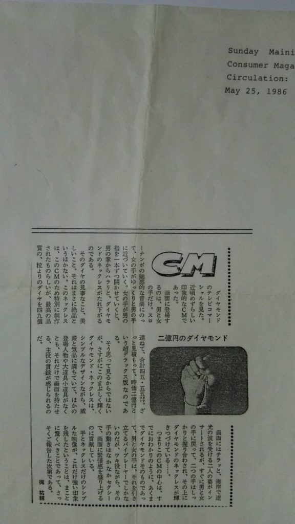 当時CMは一つの文化であるとみなされ、作り手はプライドを持って制作し、消費者にとってもエンターテイメントになっていたと思う。