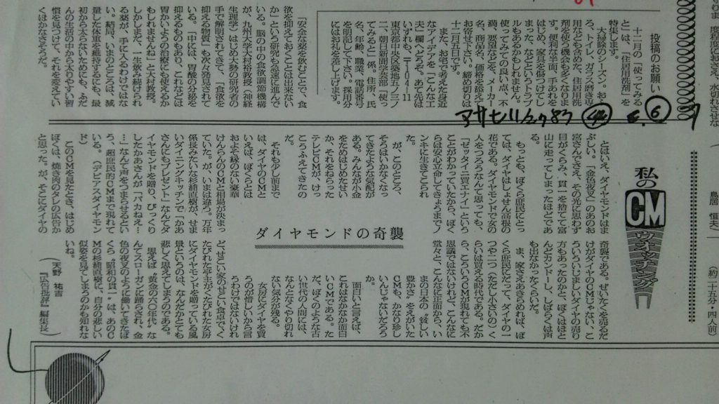 このCMも梶祐介さんからコラムにコメントをいただいた。嬉しかった。