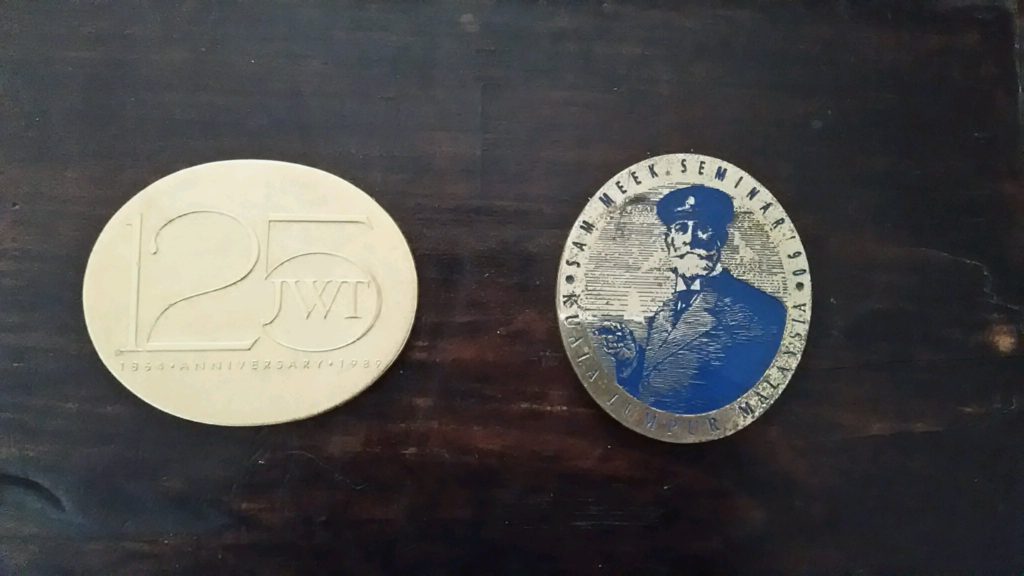 創立者が彫り込まれているサムミークセミナーの記念メダル