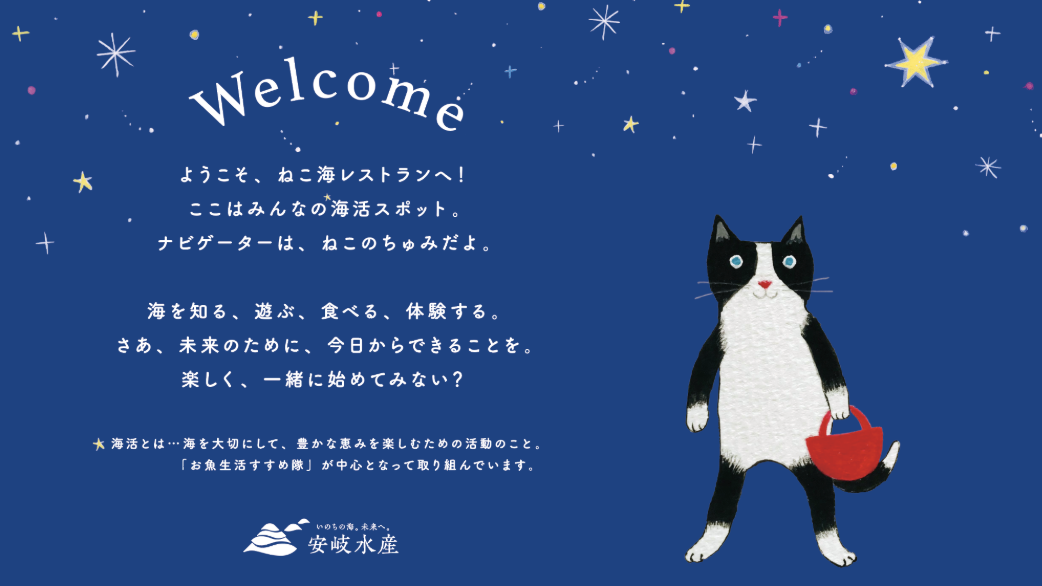 ブランディング前からお魚生活進め隊という活動をしていました。ビーチクリーンをしたり、お魚を捌く教室をしたり、一生懸命やっても人の集まりが今ひとつで先が見えませんでした。それがブランディングしてちゅみというネコのキャラクターと物語ができて、その世界がお店になったり、看板になったり、社内にたくさん絵が張り出されたりして、活動も活気づき会社の評判も変わっていきました。とてもワクワクしています。